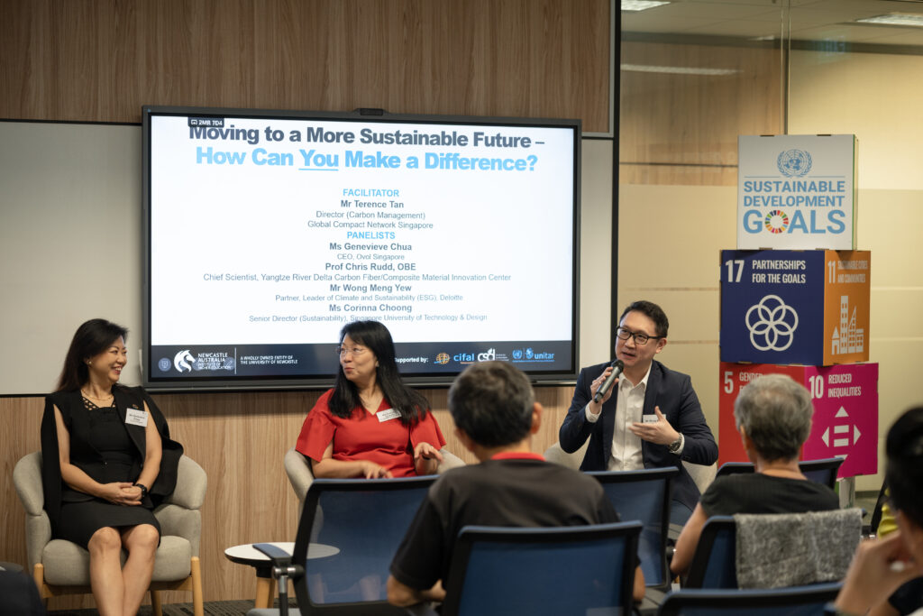 The event featured two engaging panel discussions led by industry leaders and thought leaders. The first panel, focused on sustainability practices, provided valuable insights into innovative strategies and practical applications shaping sustainable industries today. We were excited to host distinguished industry speakers, including Genevieve Chua, CEO of Ovol Singapore, Wong Meng Yew, Partner and Leader of Climate and Sustainability (ESG) at Deloitte, and Corinna Choong, Senior Director of Sustainability at the Singapore University of Technology & Design.