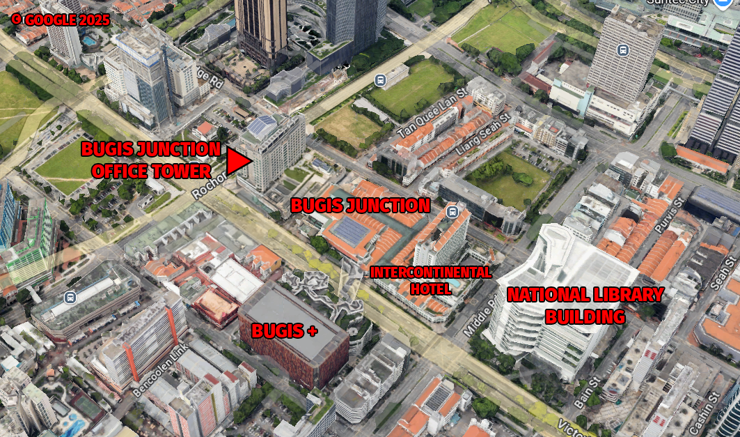 3D Aerial Map of National Library Building and Bugis Junction Office Tower