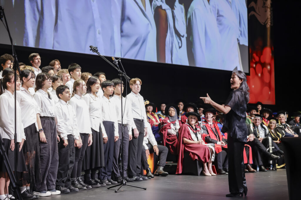 The ceremony opened with warm and inspiring messages by HE Allaster Cox, Australian High Commissioner to Singapore and The Hon Patricia Forsythe AM, Chancellor, who reminded our cohort that every achievement stands on a foundation of resilience, curiosity, and community.